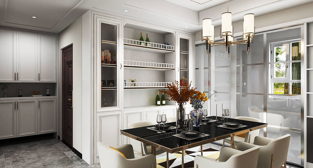 膠州機(jī)場公寓138㎡二室一廳餐廳輕奢風(fēng)格裝修案例效果圖