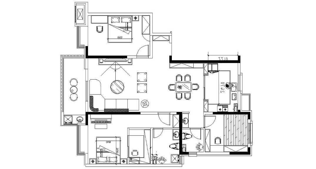 膠州機(jī)場公寓138㎡二室一廳輕奢風(fēng)格裝修戶型設(shè)計圖