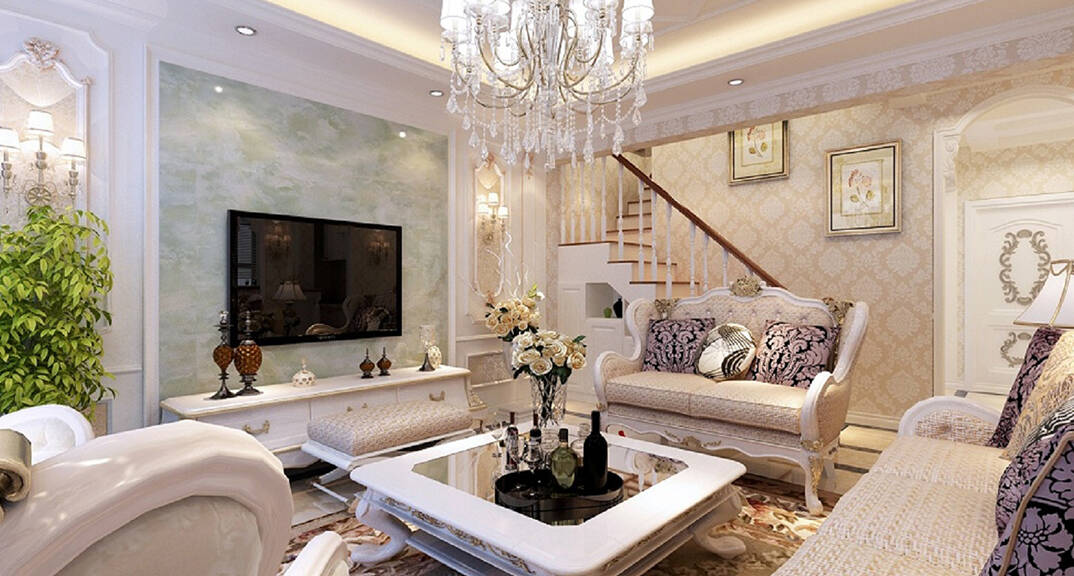 中海臨安府160m2別墅上疊一層客廳法式風格裝修案例效果圖