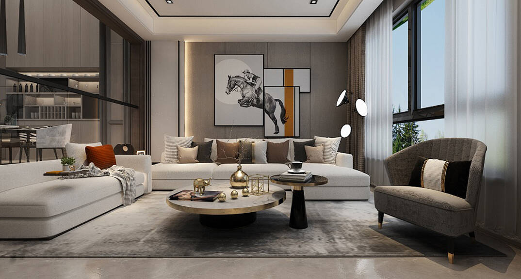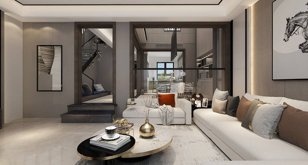 嶺海迪亞灣210平聯(lián)排別墅客廳沙發(fā)現(xiàn)代風(fēng)格裝修效果圖