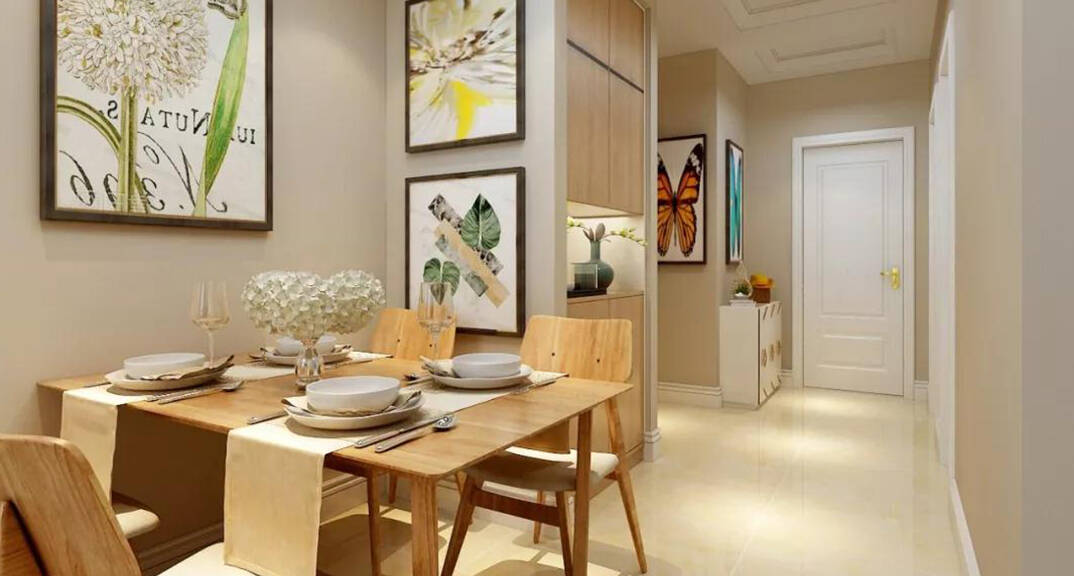 原木色的餐桌椅在淺色的硬軟裝中,顯得格外有質(zhì)感。墻面的北歐風(fēng)裝飾掛畫更是也是錦上添花,簡(jiǎn)歐風(fēng)多以米色以及暖暖的象牙白為主色調(diào),以淺色為主深色為輔,相比濃墨重彩的古典歐式,簡(jiǎn)歐更為的明凈與清新,也更符合現(xiàn)代人們對(duì)于閑適生活的追求。