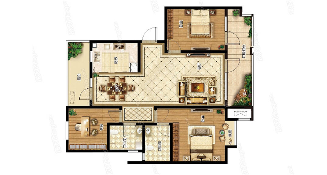 鑫江桂花園120㎡二室一廳二衛(wèi)戶型圖