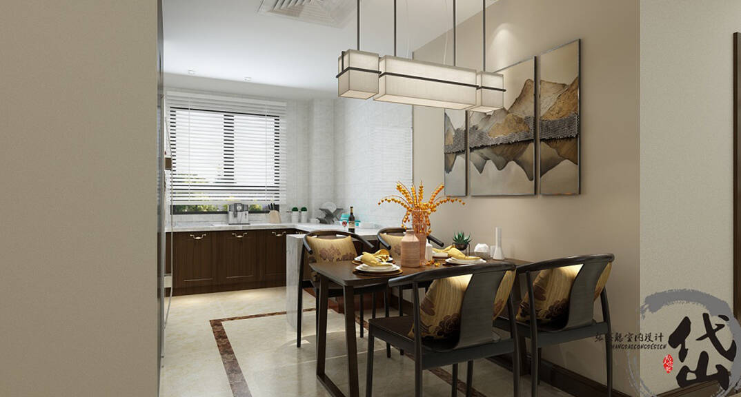 縵沙半島115㎡四室兩廳兩衛(wèi)廚房及餐廳現(xiàn)代中式風(fēng)格裝修案例效果圖