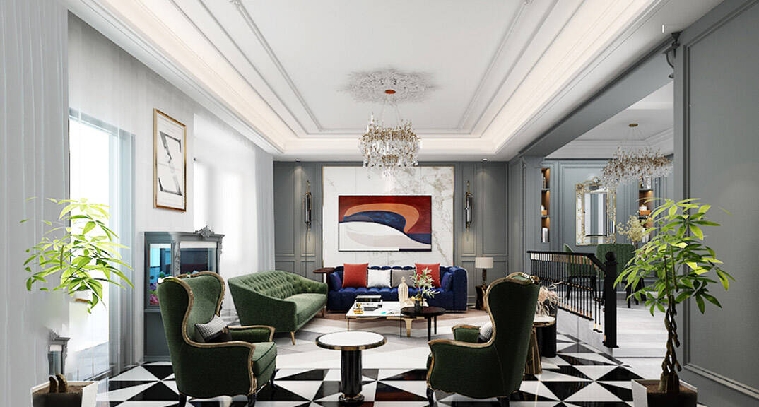荷塘月色320平別墅輕奢風格裝修-客廳