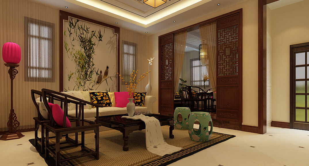 銀盛泰德郡220㎡別墅二層客廳新中式風格裝修案例效果圖