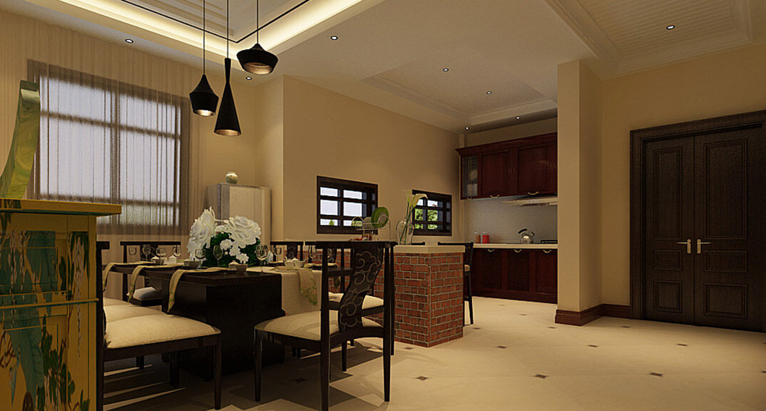 銀盛泰德郡220㎡別墅一層餐廳及廚房新中式風格裝修案例效果圖