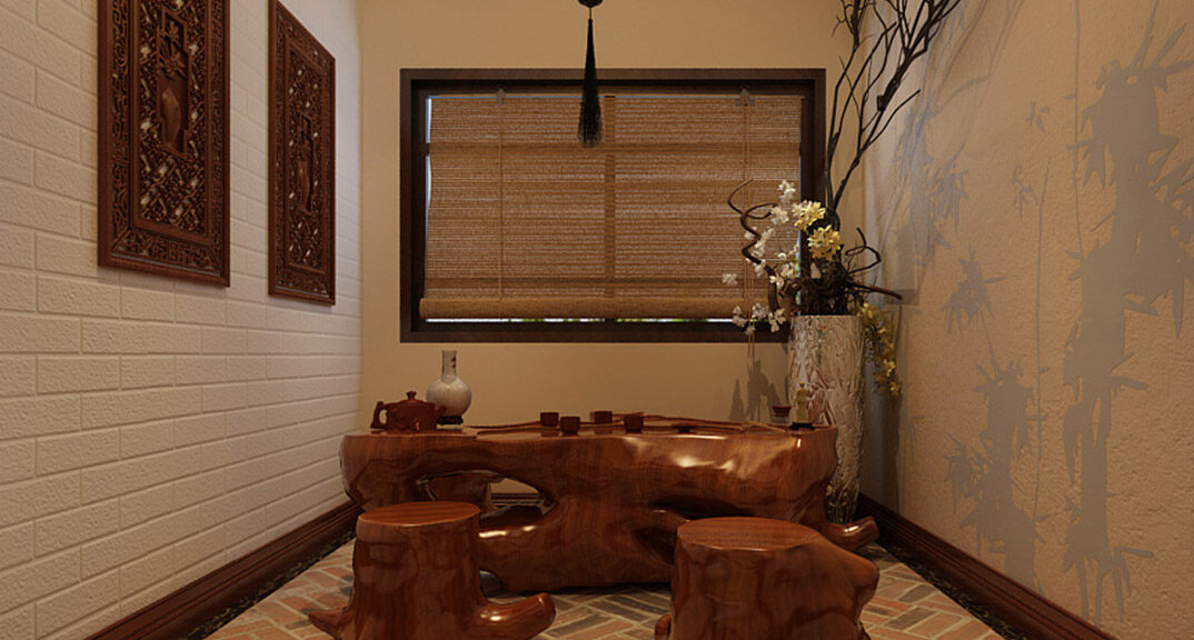 銀盛泰德郡220㎡別墅一層休閑茶室新中式風格裝修案例效果圖