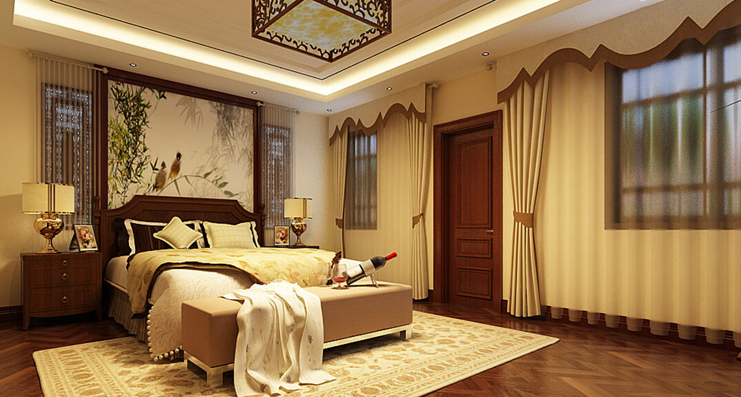 銀盛泰德郡220㎡別墅二層主臥新中式風格裝修案例效果圖
