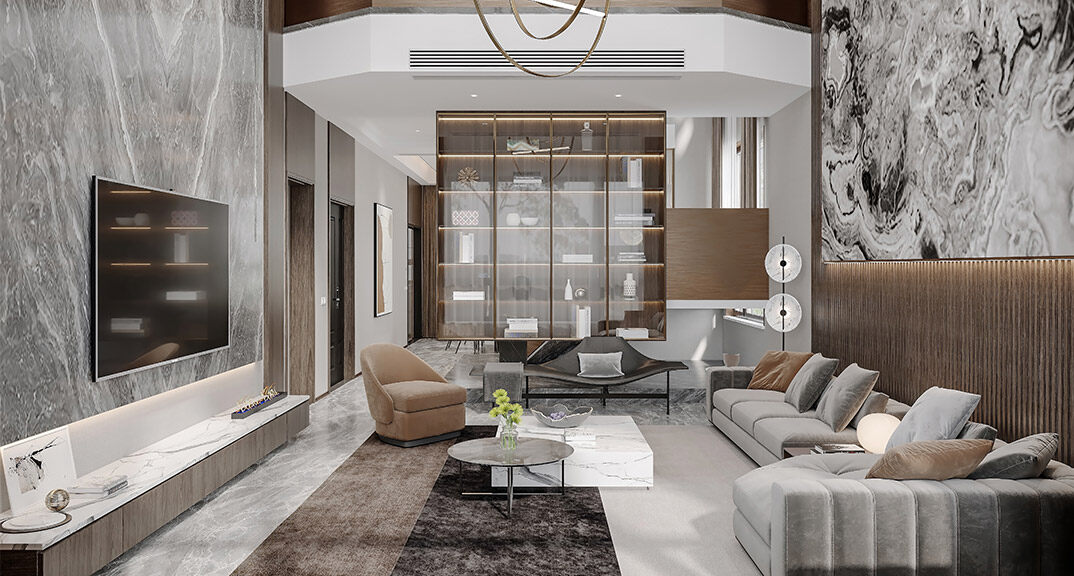 宜景灣260㎡現(xiàn)代風(fēng)格硬裝裝修客廳效果圖