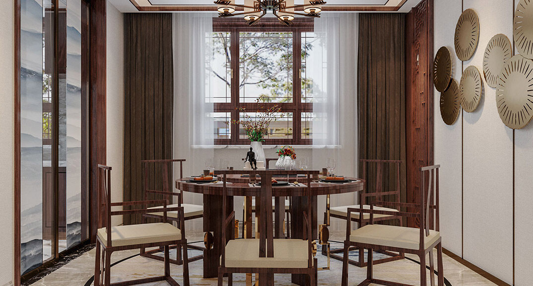 中歐金茂墅別墅中式風(fēng)格餐廳裝修效果圖