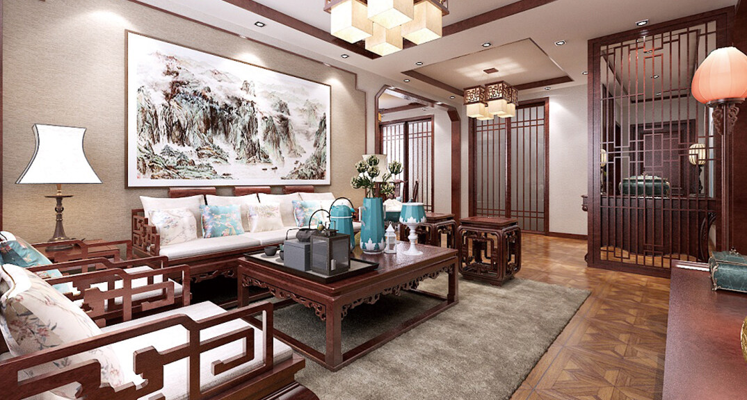科大公寓138㎡別墅客廳沙發(fā)中式風(fēng)格裝修案例效果圖