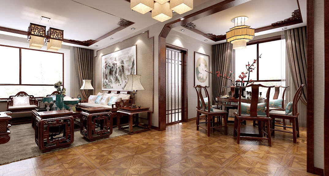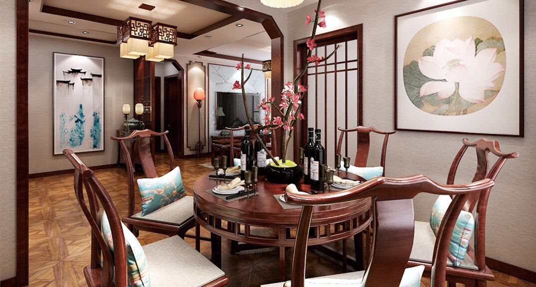 科大公寓138㎡別墅客餐廳中式風(fēng)格裝修案例效果圖