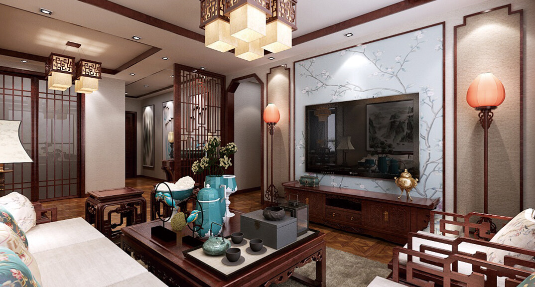 科大公寓138㎡別墅客廳電視中式風(fēng)格裝修案例效果圖