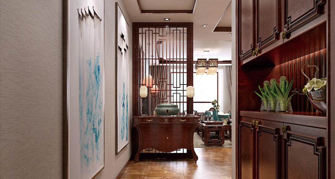 科大公寓138㎡別墅玄關(guān)中式風(fēng)格裝修案例效果圖