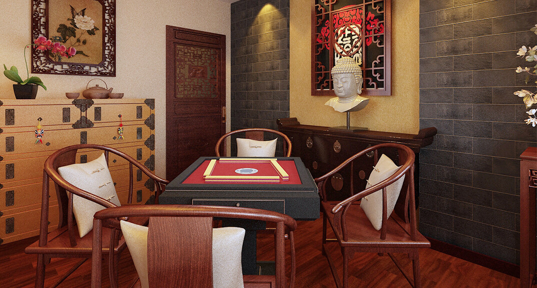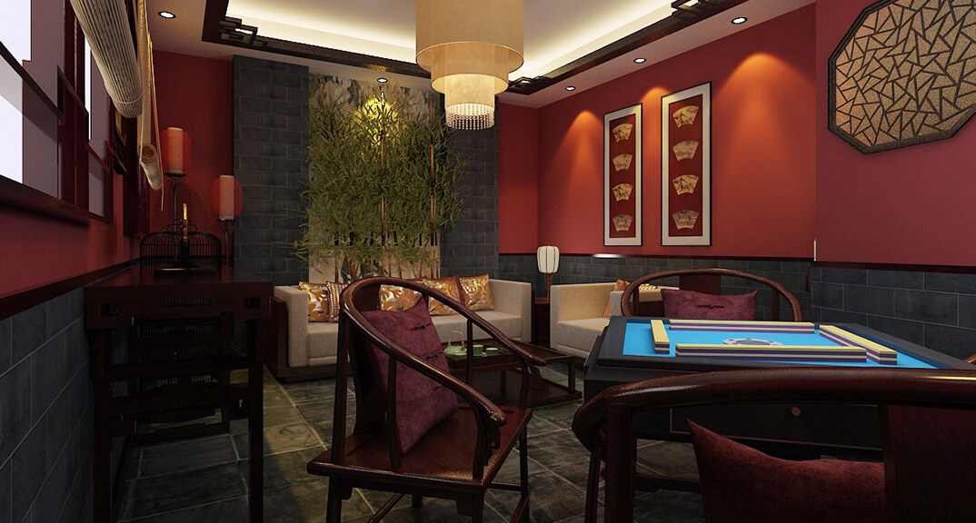 茶樓裝修200㎡茶室棋牌室中式風(fēng)格案例效果圖