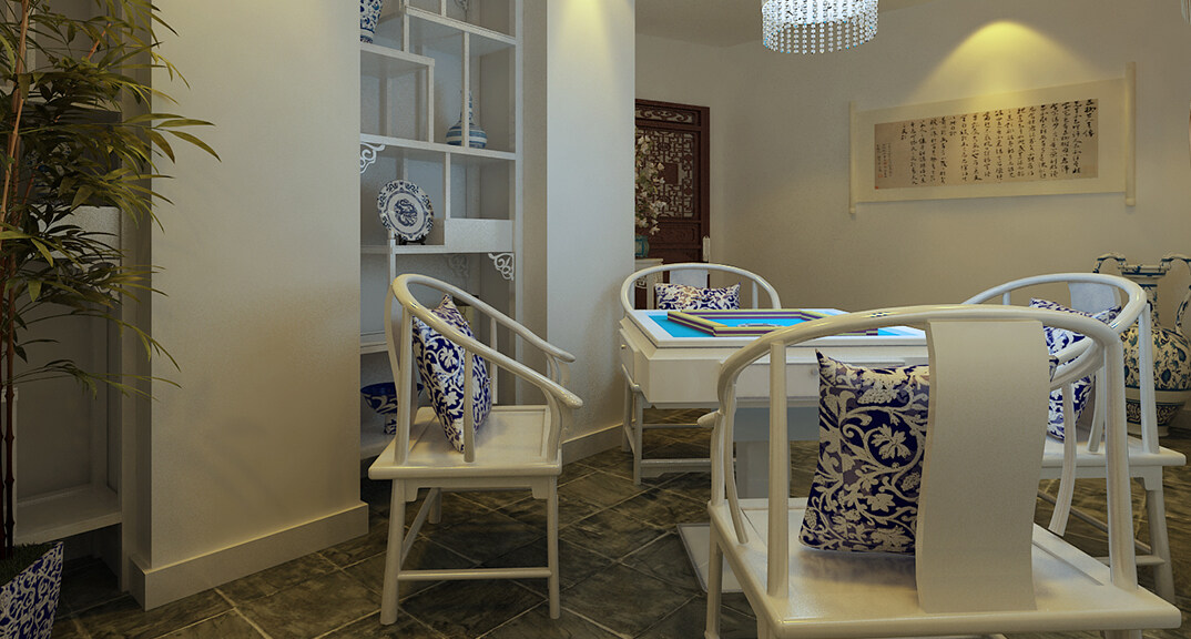 茶樓裝修200㎡茶室棋牌室中式風(fēng)格案例效果圖-冬青