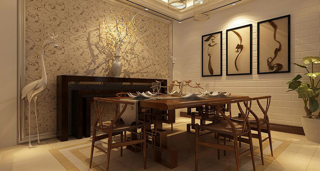 時(shí)代城318㎡別墅餐廳新中式風(fēng)格裝修案例效果圖