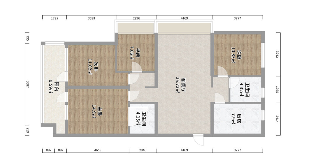 桃李芳菲4室2廳1廚2衛(wèi)126㎡戶(hù)型圖