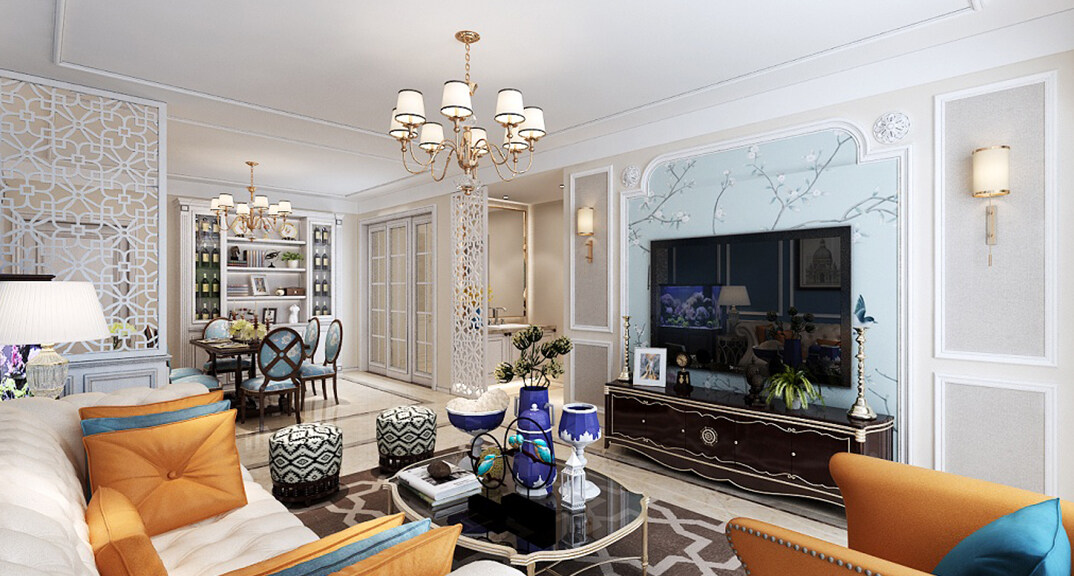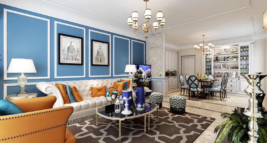 憑海臨風142㎡三室二廳客廳美式風格裝修案例效果圖