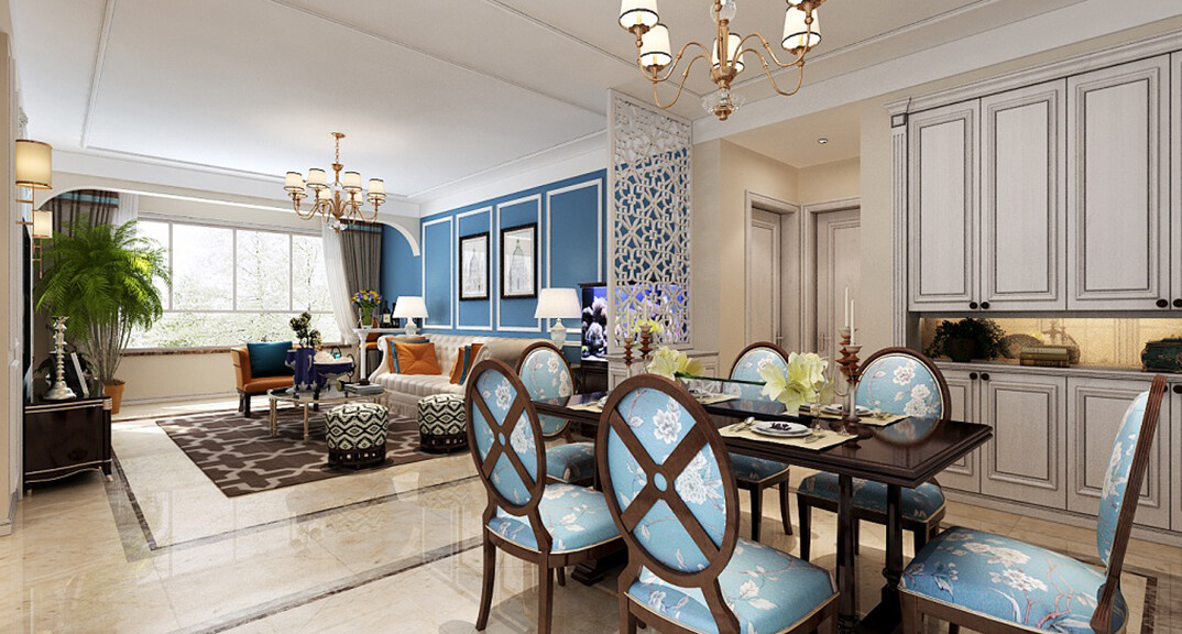 憑海臨風142㎡三室二廳客餐廳美式風格裝修案例效果圖