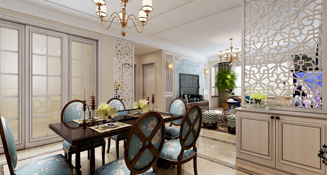 憑海臨風142㎡三室二廳餐廳美式風格裝修案例效果圖