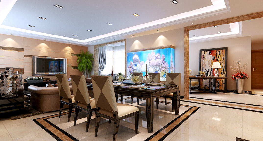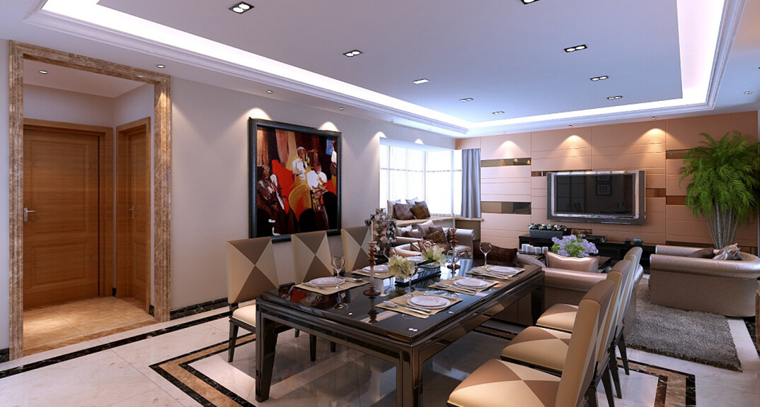 曉港名城164㎡三室一廳客餐廳港式風格裝修案例效果圖