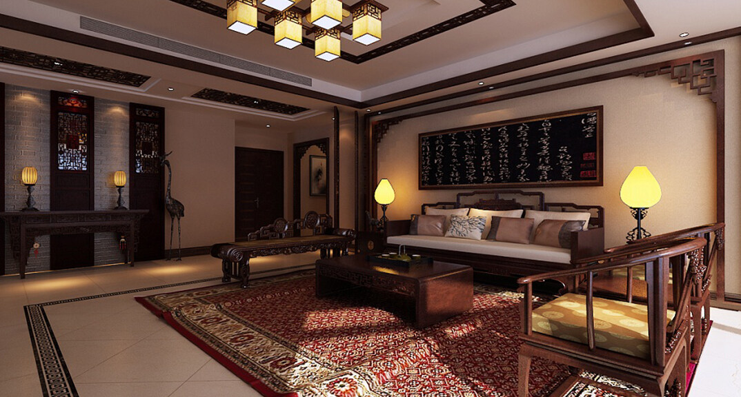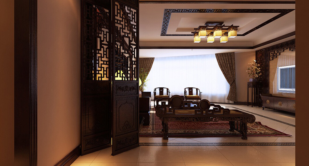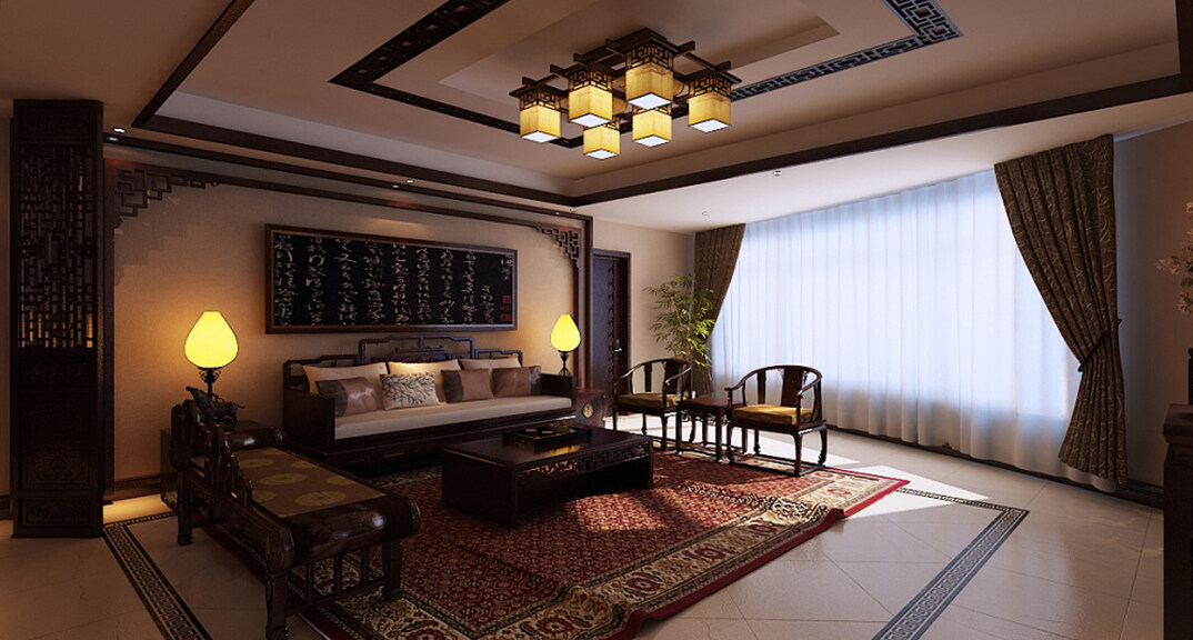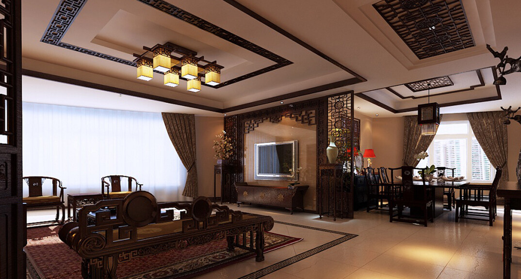燕島國際172㎡平層客廳中式風(fēng)格裝修案例效果圖