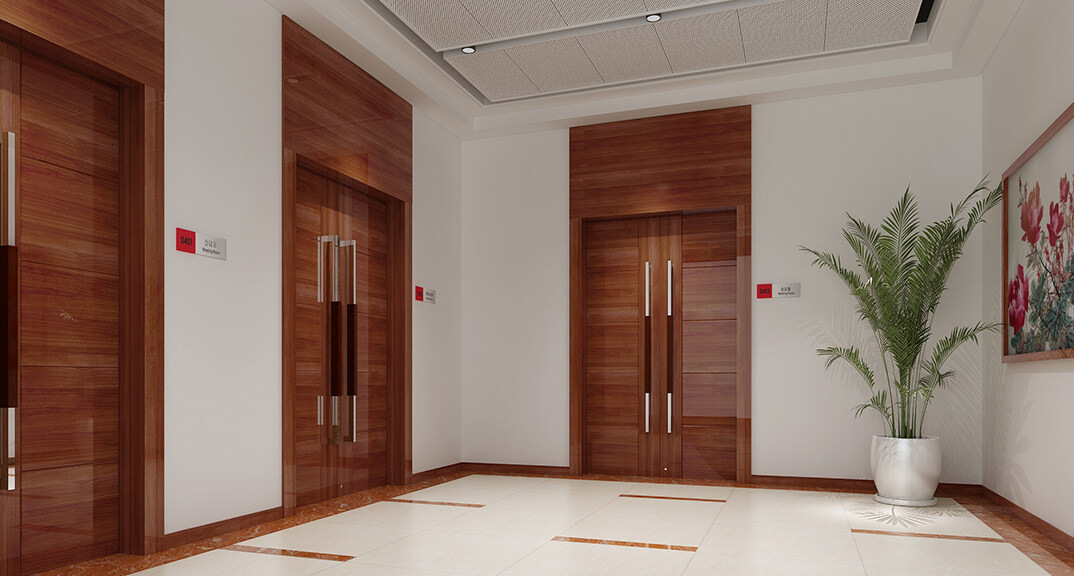 老年活動中心840㎡工裝會議室門廳簡約風格裝修案例效果圖