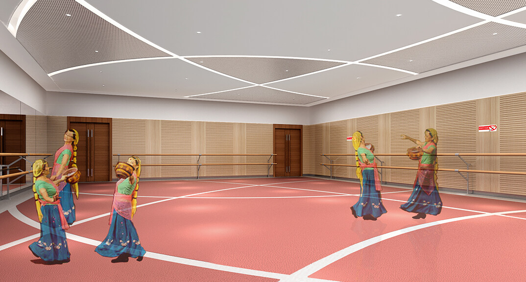 老年活動中心840㎡工裝老年排練廳簡約風格裝修案例效果圖