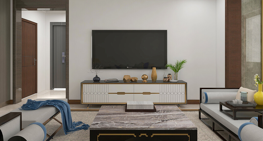 青安·海悅居86㎡二室二廳客廳電視現(xiàn)代簡(jiǎn)約風(fēng)格裝修案例效果圖