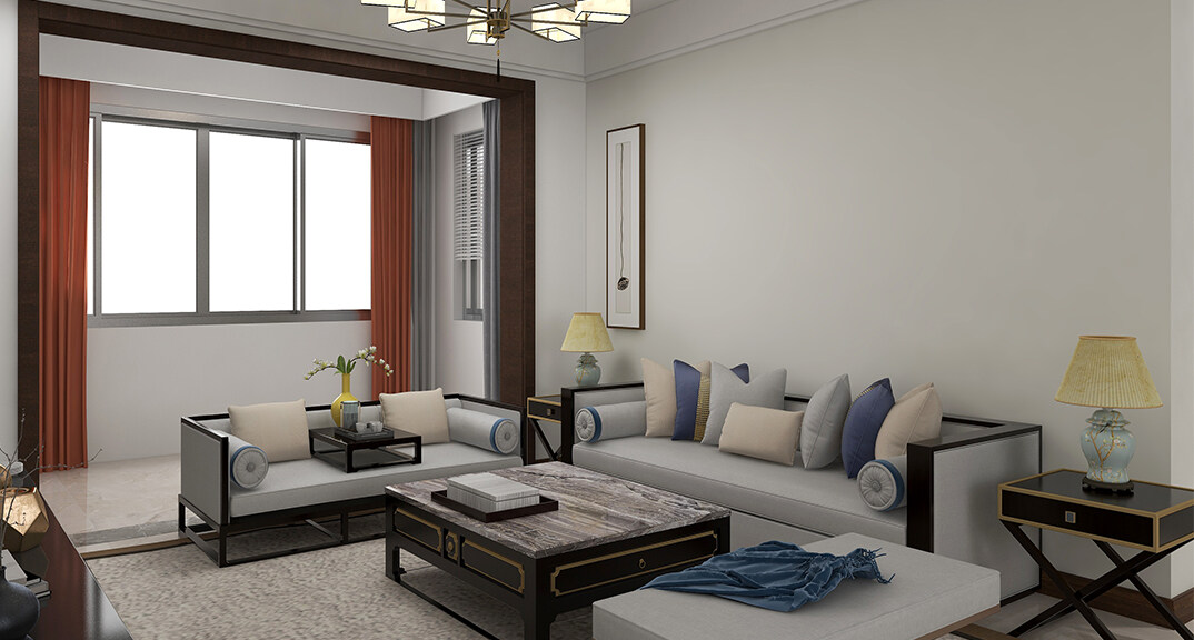 青安·海悅居86㎡二室二廳客廳沙發(fā)現(xiàn)代簡(jiǎn)約風(fēng)格裝修案例效果圖