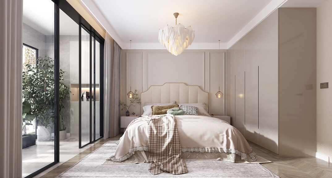 青建依山半島103㎡三室兩廳臥室簡(jiǎn)約風(fēng)格裝修案例效果圖