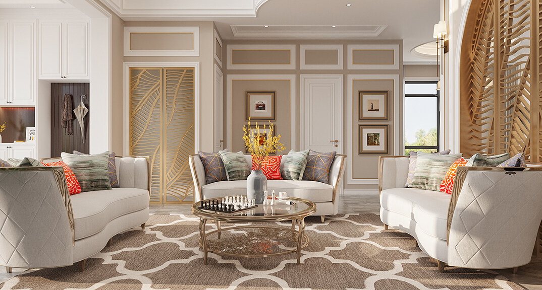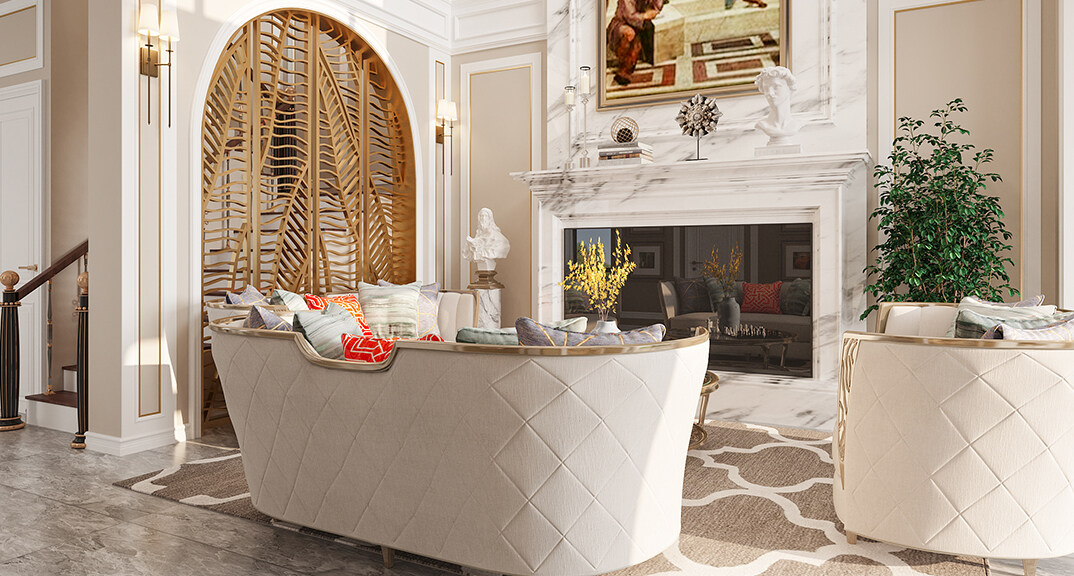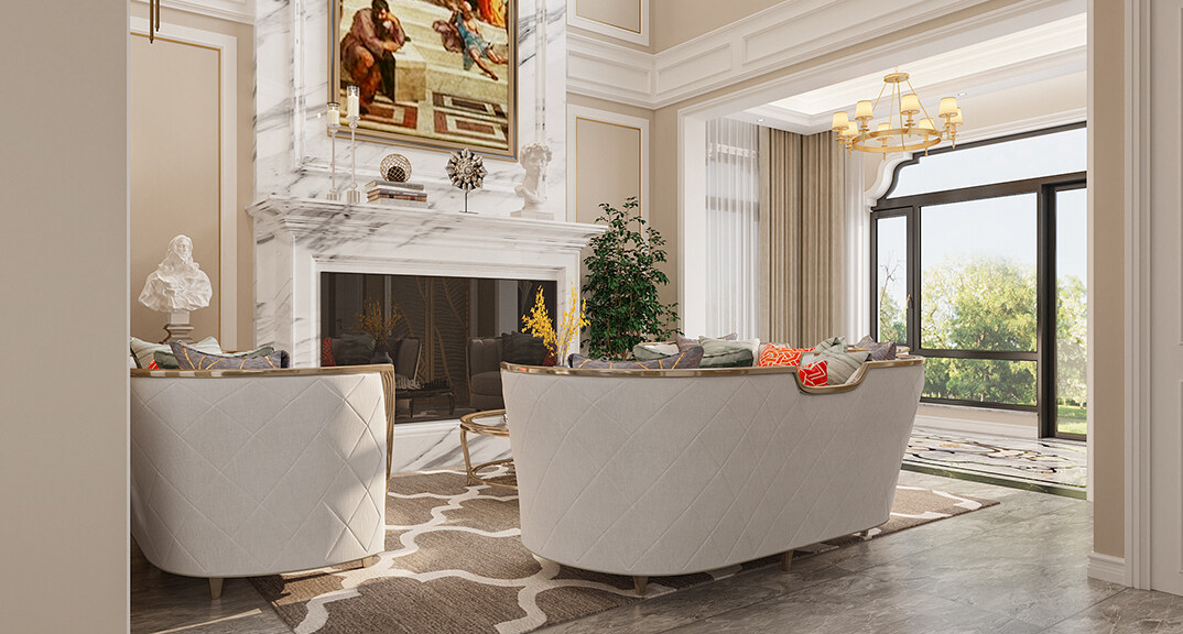 海信千畝園240㎡三室兩廳客廳美式輕奢風(fēng)格裝修案例效果圖