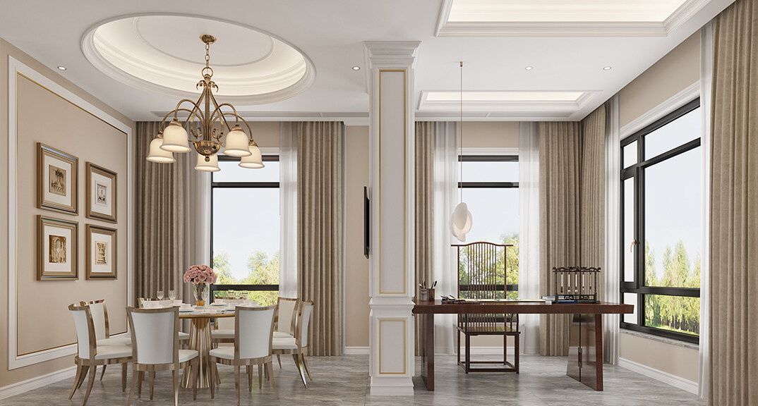 海信千畝園240㎡三室兩廳餐廳書房美式輕奢風(fēng)格裝修案例效果圖