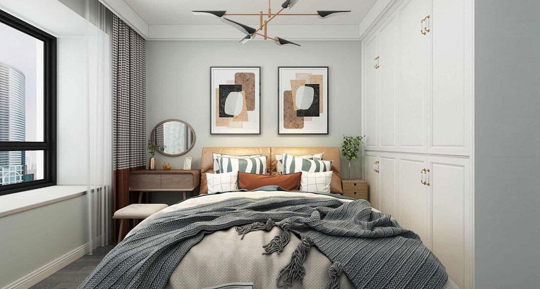 桂花園100㎡三室二廳臥室北歐風(fēng)格裝修案例效果圖