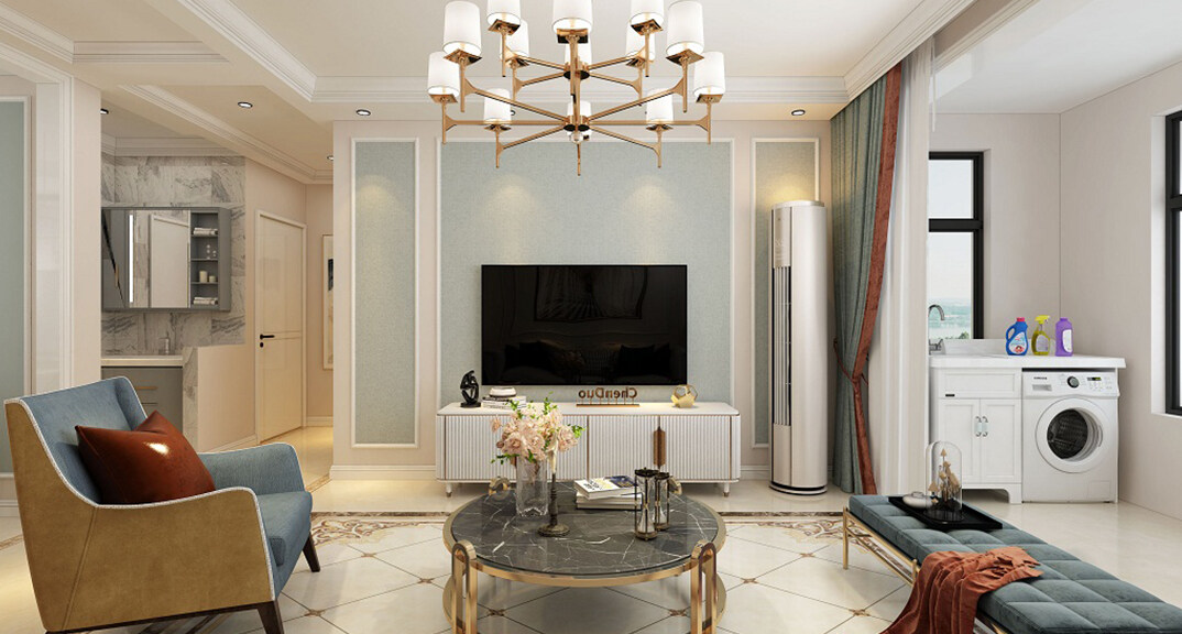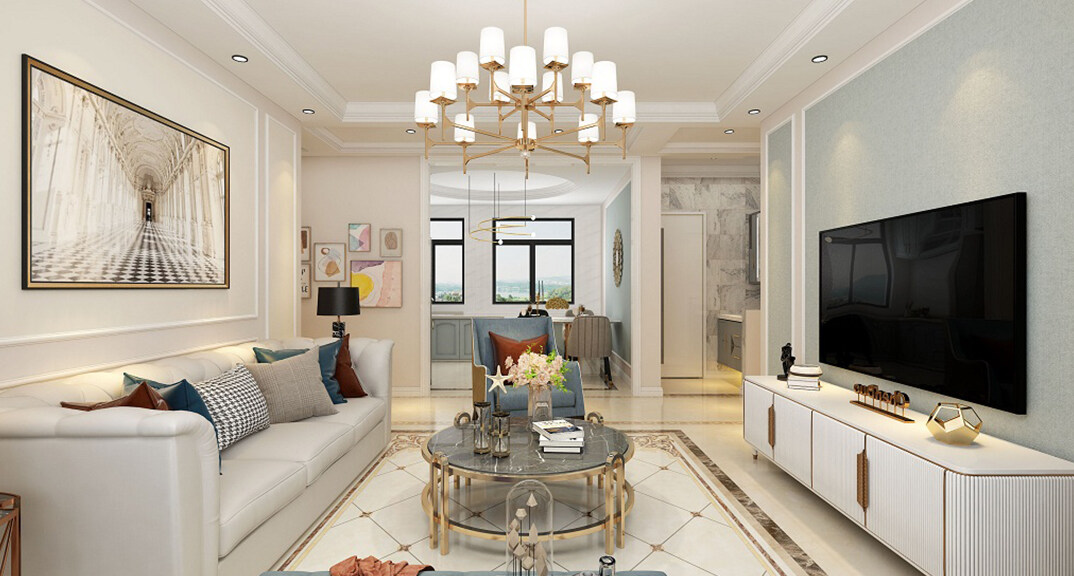青鋼小鎮(zhèn)105㎡三室兩廳客廳簡歐現(xiàn)代風(fēng)格裝修案例效果圖
