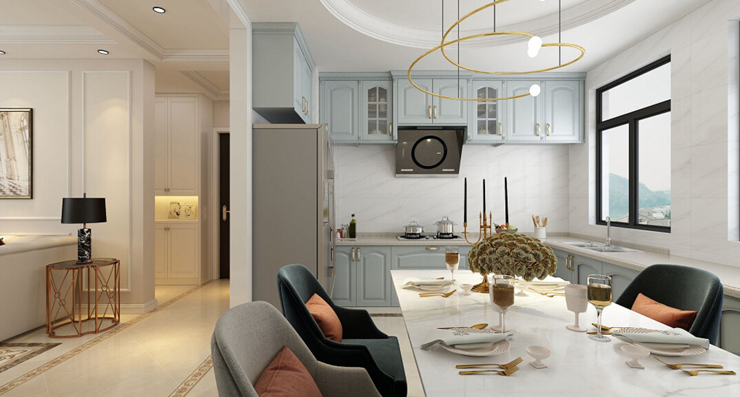 青鋼小鎮(zhèn)105㎡三室兩廳餐廳簡歐現(xiàn)代風(fēng)格裝修案例效果圖