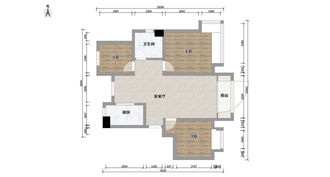 桂花園110㎡三室兩廳次臥輕奢風(fēng)格裝修案例效果圖