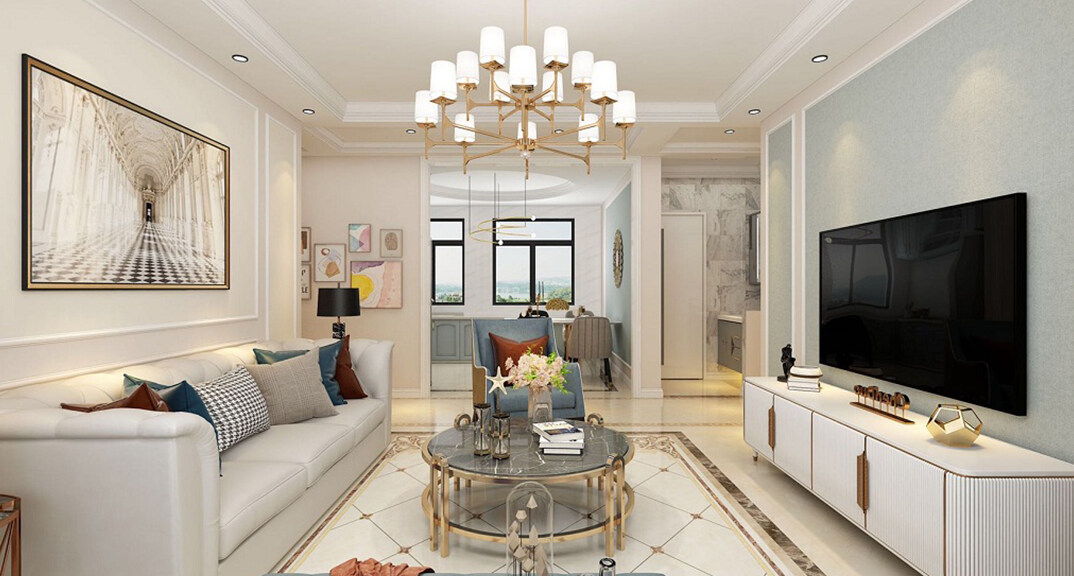 桂花園110㎡三室兩廳客廳輕奢風(fēng)格裝修案例效果圖