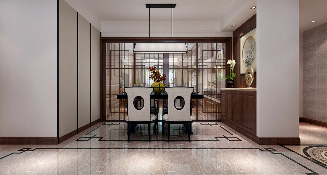 安泰悅湖灣138㎡三室兩廳餐廳新中式風(fēng)格裝修案例效果圖