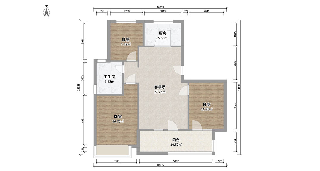 越秀天悅海灣97㎡三室一廳戶(hù)型平面布局圖