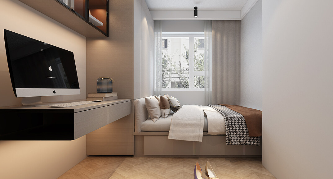 越秀天悅海灣97㎡三室一廳臥室現(xiàn)代輕奢風(fēng)格裝修案例效果圖