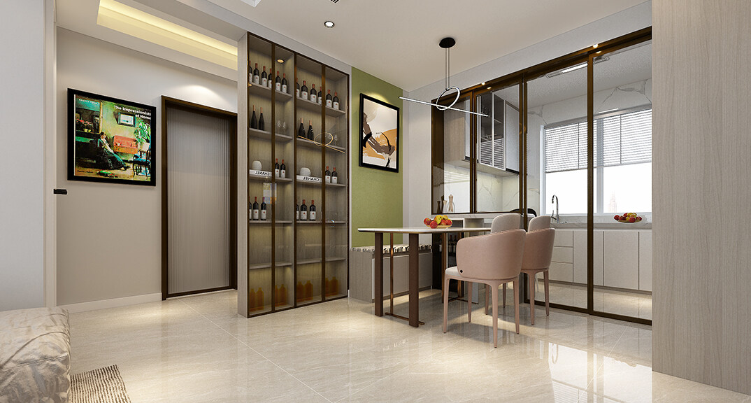 越秀天悅海灣97㎡三室一廳餐廳現(xiàn)代輕奢風(fēng)格裝修案例效果圖
