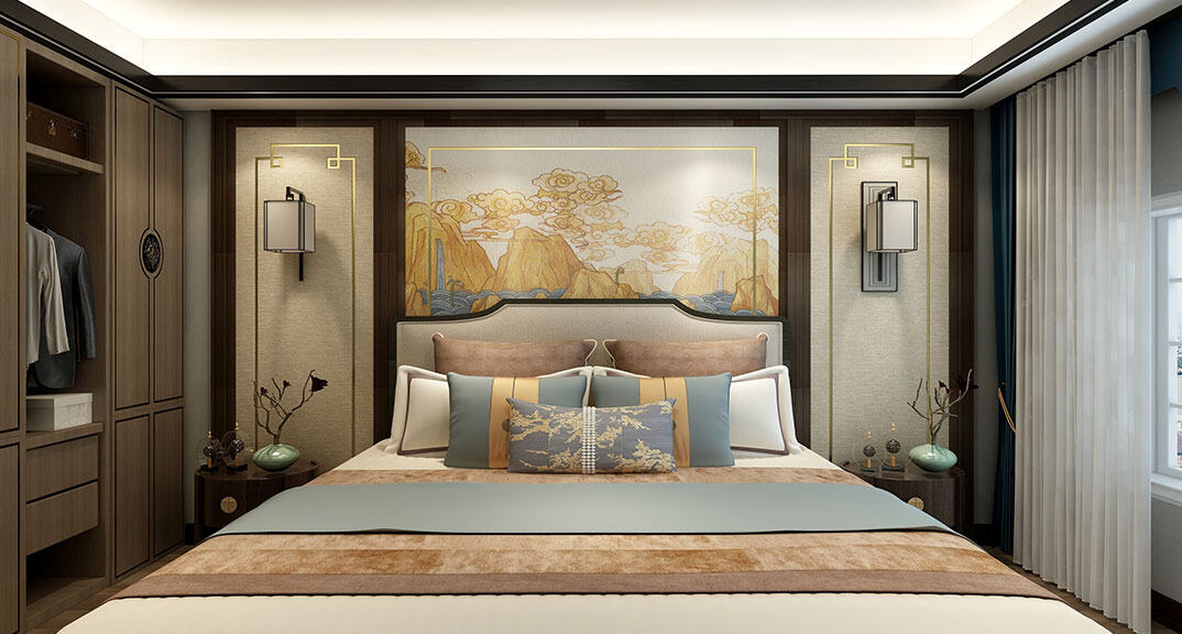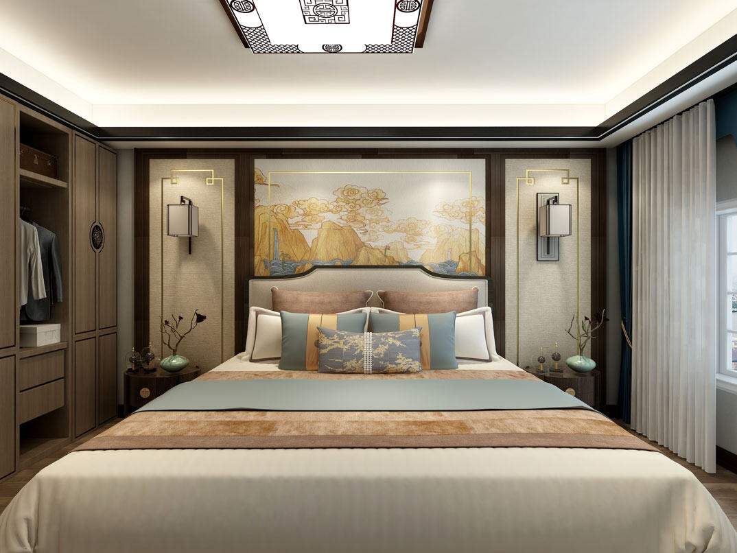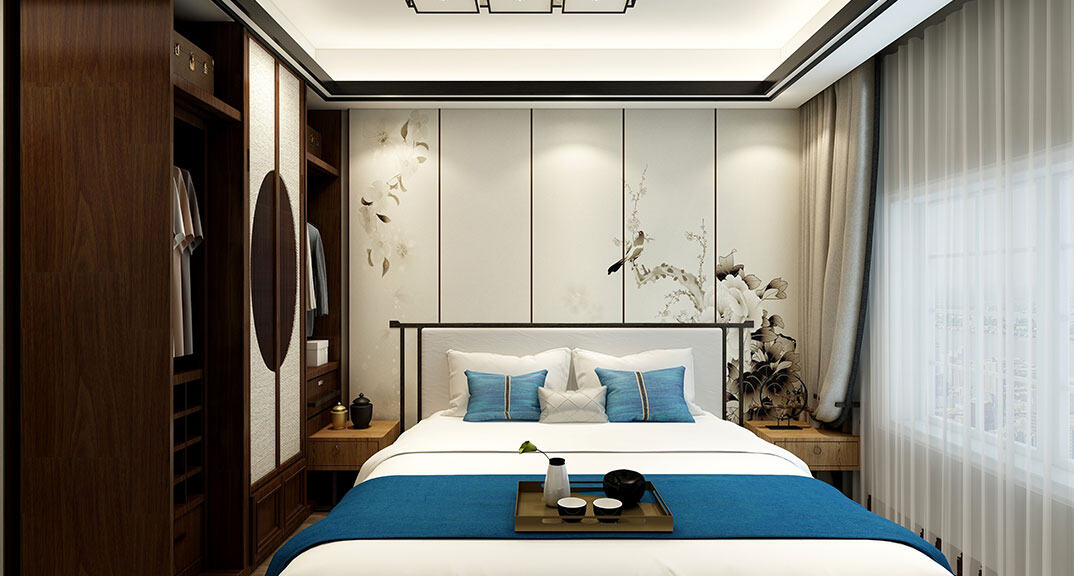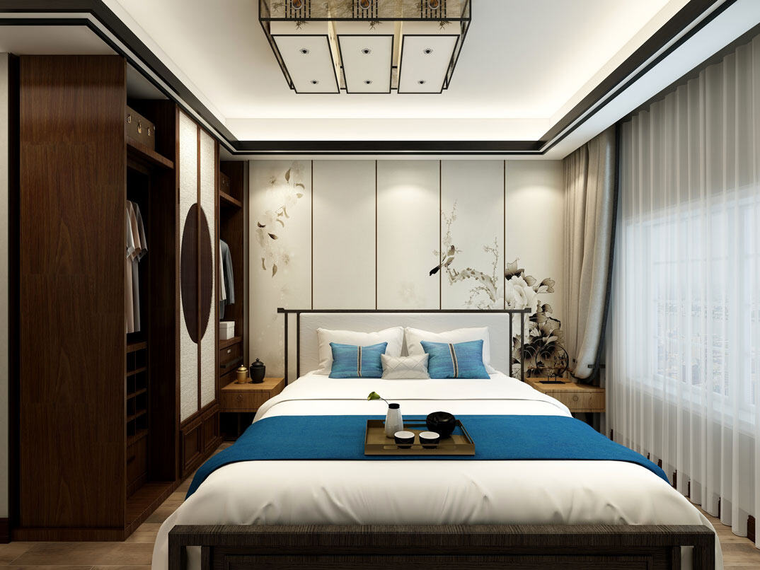 依云四季138㎡四室兩廳主臥新中式風格裝修案例效果圖