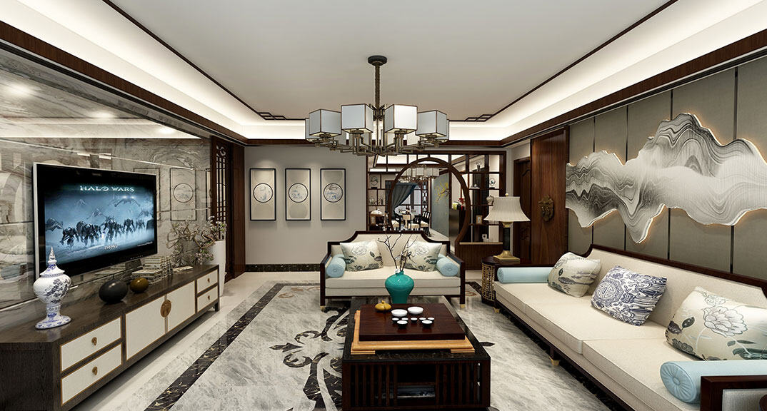 依云四季138㎡四室兩廳客廳新中式風格裝修案例效果圖