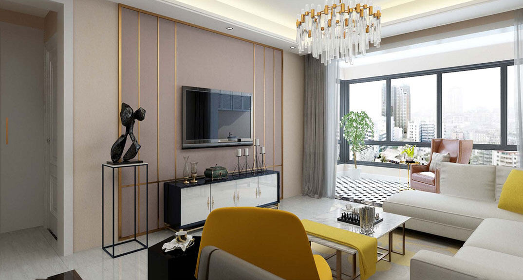 安泰德園138㎡四室兩廳客廳現(xiàn)代簡約風(fēng)格裝修案例效果圖