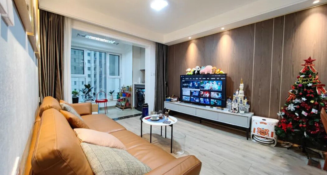 卓越皇后道90㎡三室兩廳客廳輕奢極簡(jiǎn)風(fēng)格裝修實(shí)景效果圖