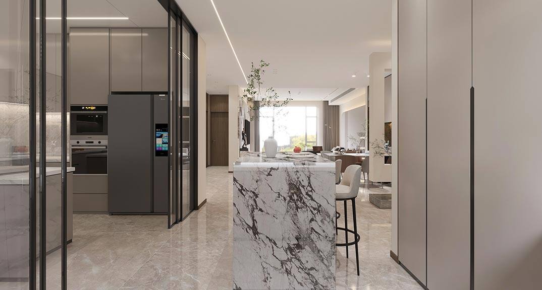 紅島府260㎡別墅吧臺(tái)廚房現(xiàn)代極簡(jiǎn)風(fēng)格裝修案例效果圖
