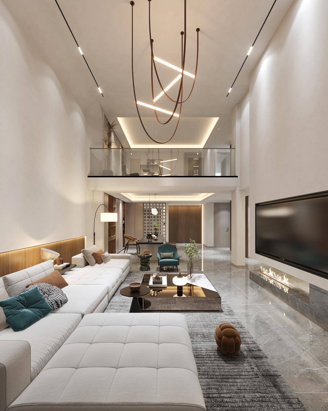 紅島府260㎡別墅客廳現(xiàn)代極簡(jiǎn)風(fēng)格裝修案例效果圖
