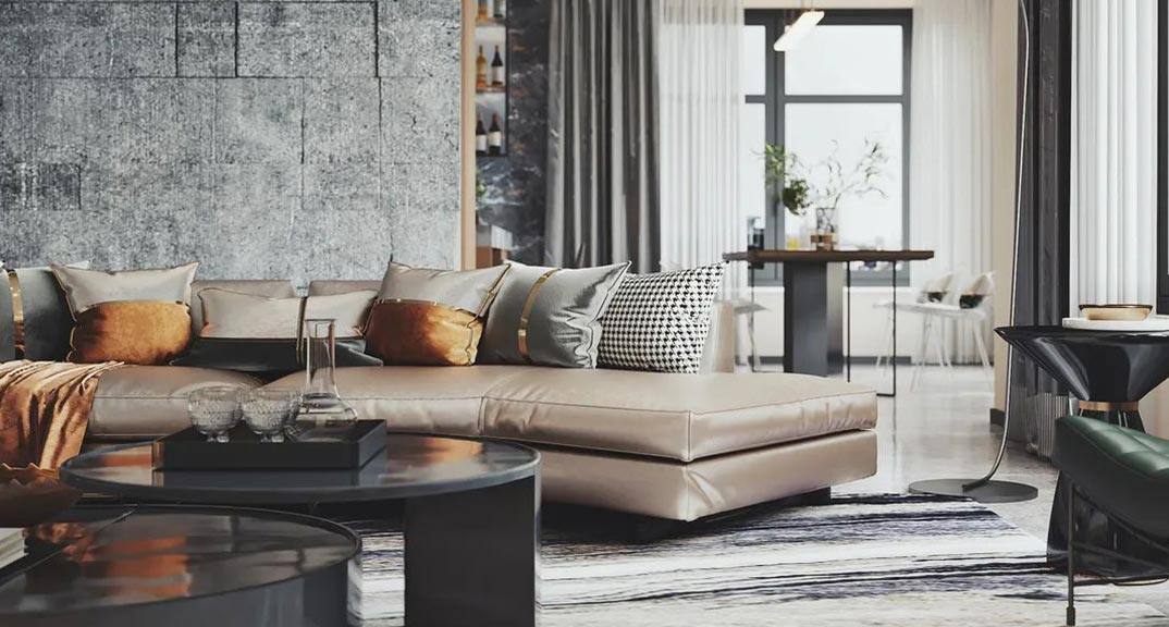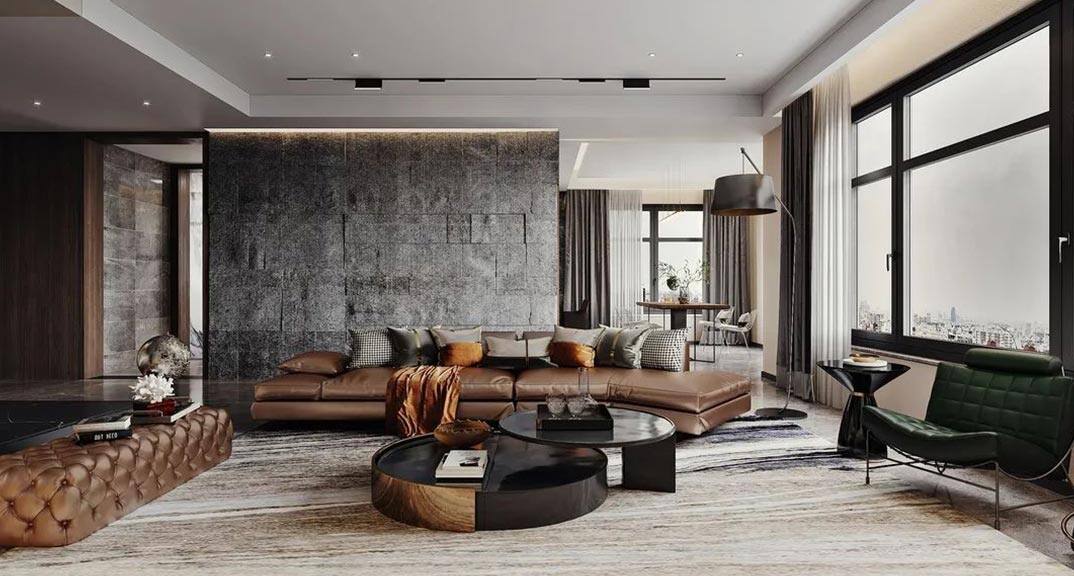 月?;▓@220㎡四室兩廳客廳沙發(fā)現(xiàn)代簡約風(fēng)格裝修案例效果圖